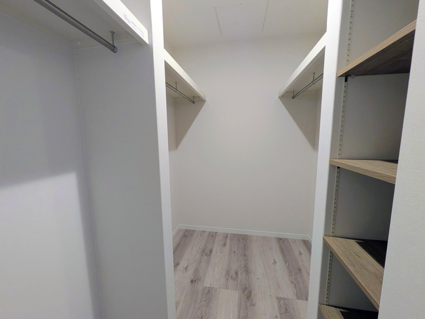 先程ちらっと紹介しましたが、階段を上がってすぐの場所に収納力抜群のファミリークローゼットや収納棚もあり、家族全員の季節外の服や布団もすっきり片付けできそうです♪