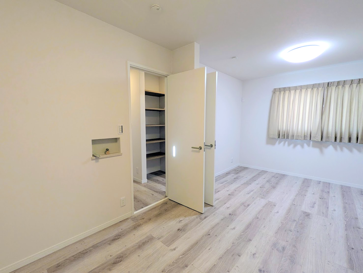 2階には、将来の成長に合わせて2部屋に仕切れる広い洋室と、主寝室があります。社長がこっそり教えてくれたこだわりポイントが「窓のサイズ」。