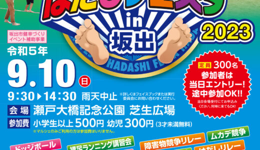瀬戸大橋記念公園で「はだしフェスタin坂出」が2023年9月10日(日)に開催される。裸足を通じて健康を考えるイベント