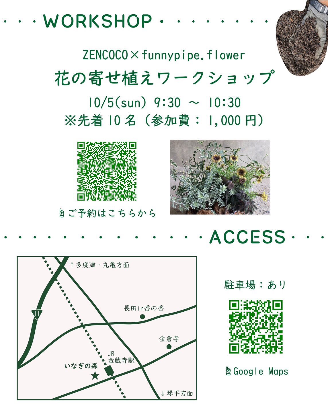 当日は「ZENCOCO × funnypipe.flower」による寄せ植えワークショップも同時開催。