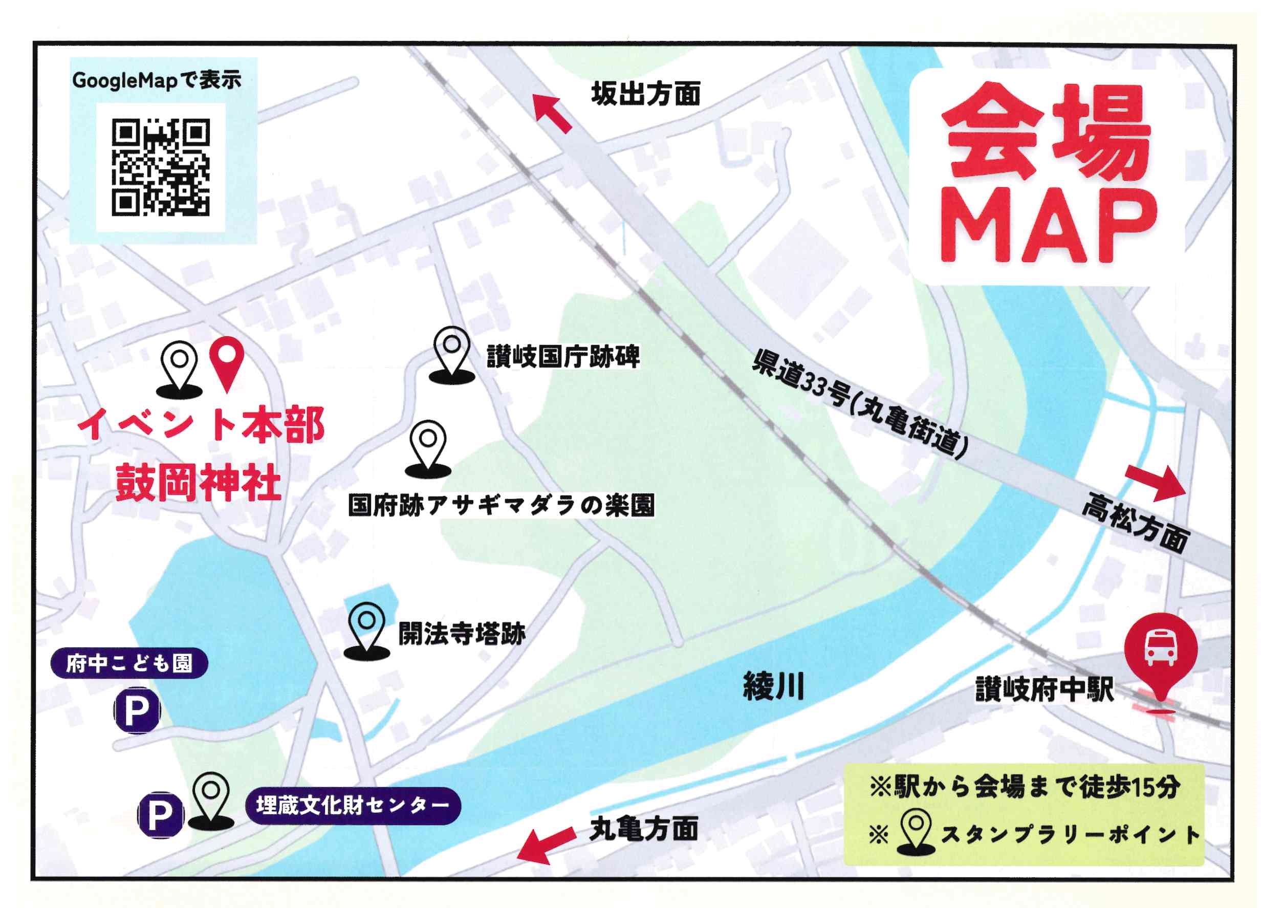 - 駐車場は香川県埋蔵文化財センター、府中こども園の駐車場をご利用ください。