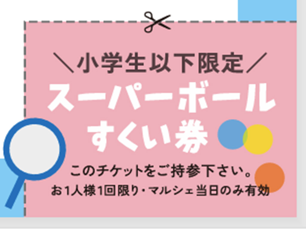 チラシに付いてる券を持っていくとスーパーボールすくいに参加できる!小学生以下は券を忘れずに持っていこう!