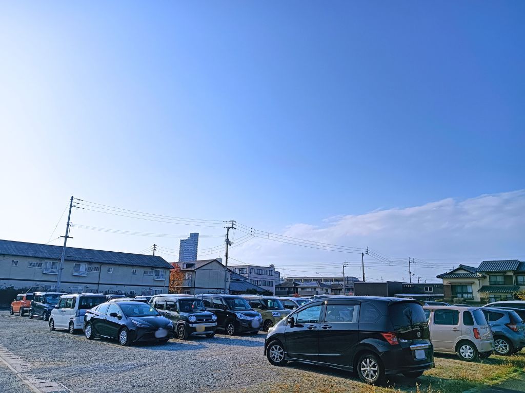 写真の赤丸部分がイベント用の駐車場として使われるようです。広めの駐車場ですが数に限りはありますので、近所の方は散歩がてら徒歩で、少し遠くの方も頑張って徒歩で、かなり遠くの方は公共交通機関を利用してください。
