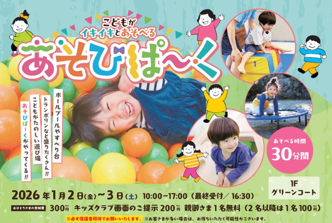 | 1/2(金)・1/3(土) | あそびぱーく|ボールプールやすべり台など盛りだくさん! 🔗 詳細 |