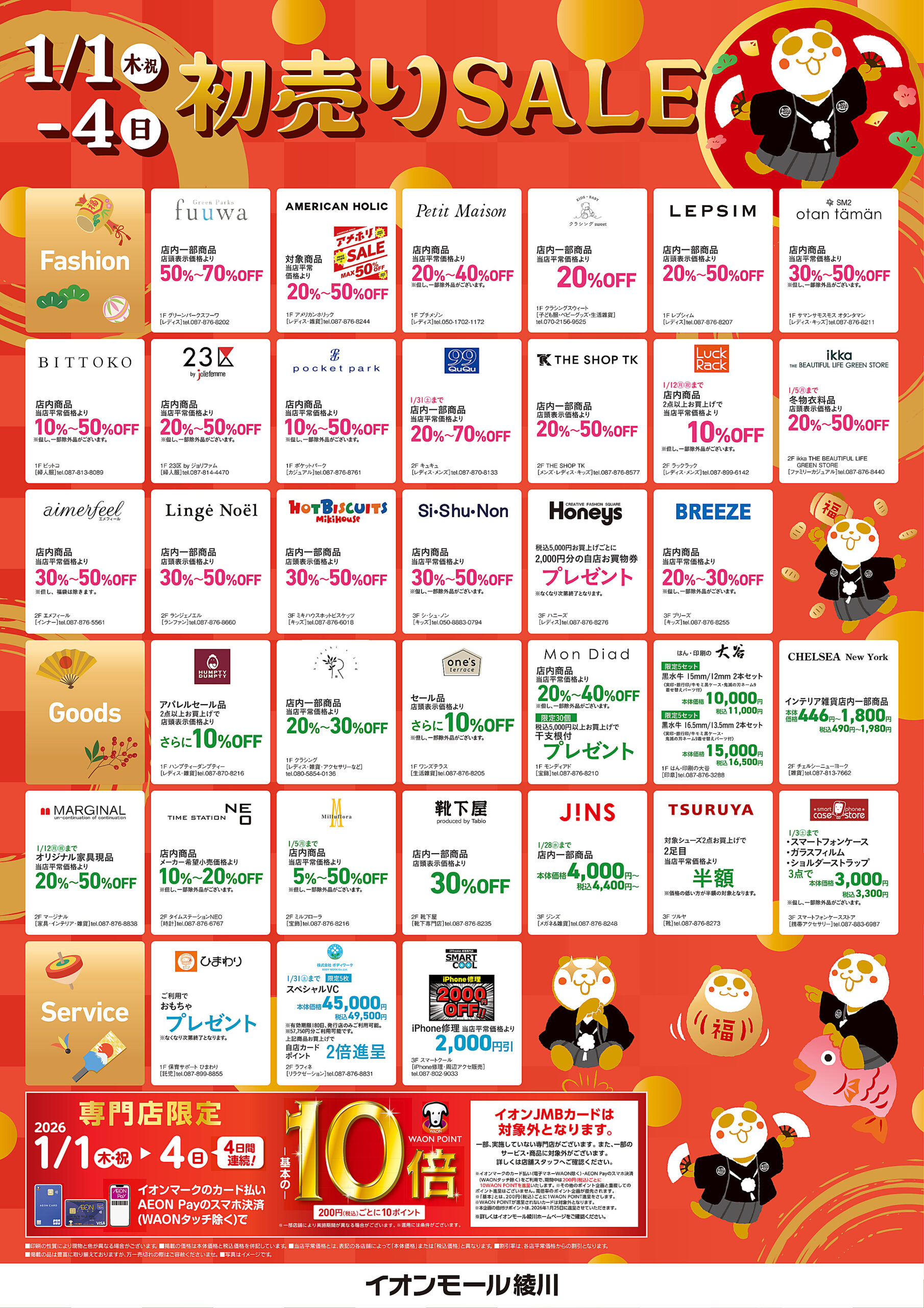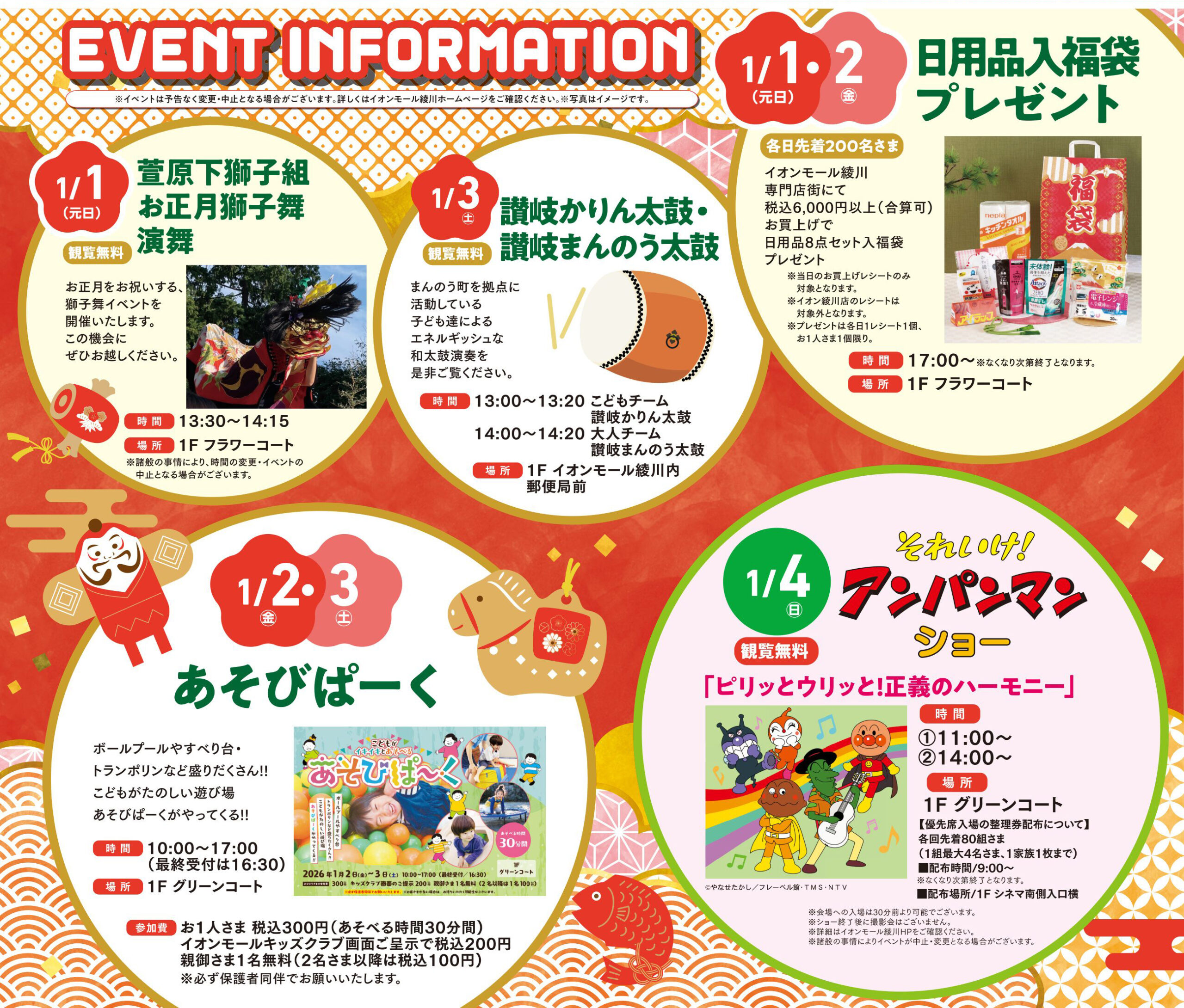 2026年のイオンモール綾川は、元旦から楽しみが満載!