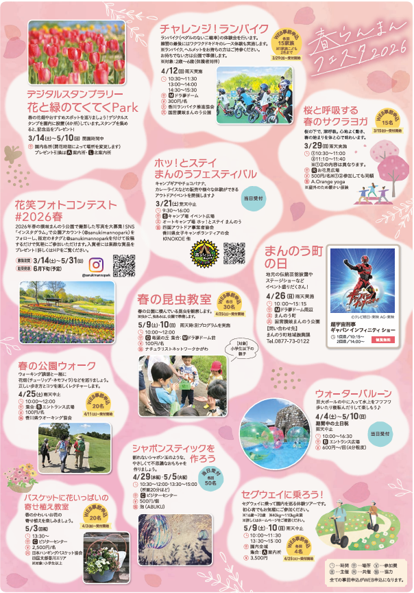 2026年も家族や友人と出かけたくなる楽しい仕掛けが盛りだくさんですよ!天気の良い日はお弁当を広げて、のんびりと中讃の春を満喫しに出かけてみてはいかがでしょうか?