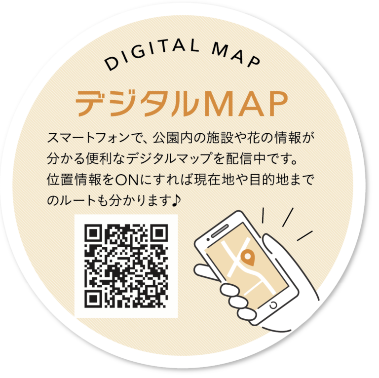 「花巡りの丘」や「飛竜の花道」と言われてもわかんないって方は是非「デジタルマップ」を活用してください。スマホで施設や花の情報がわかる便利で使いやすいマップなんです♪
