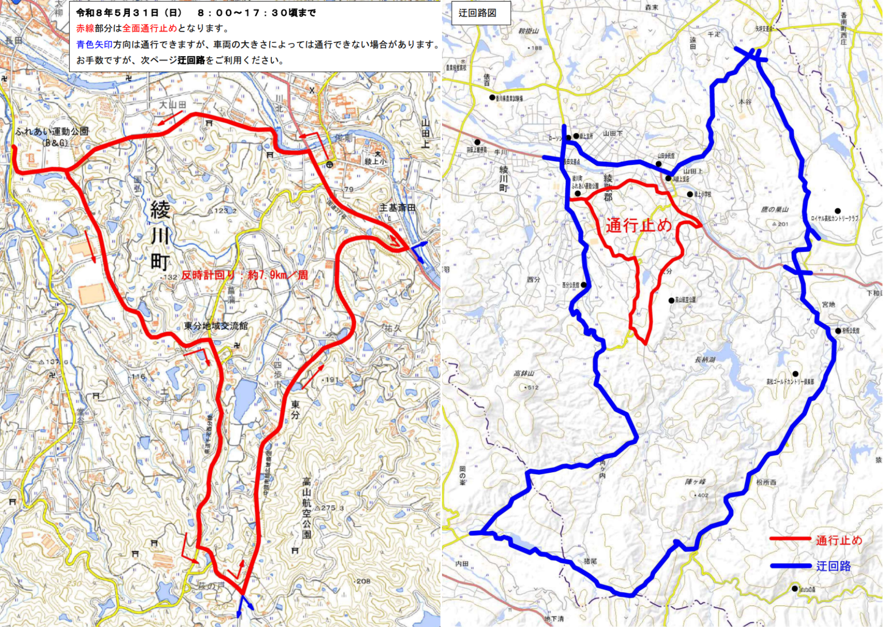 大会当日の8:00〜17:30の間、コース周辺は全面通行止めとなります。