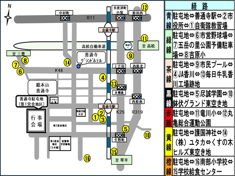 ※市中観閲行進実施中(11:30~12:30)は、シャトルバスの運行は一時休止