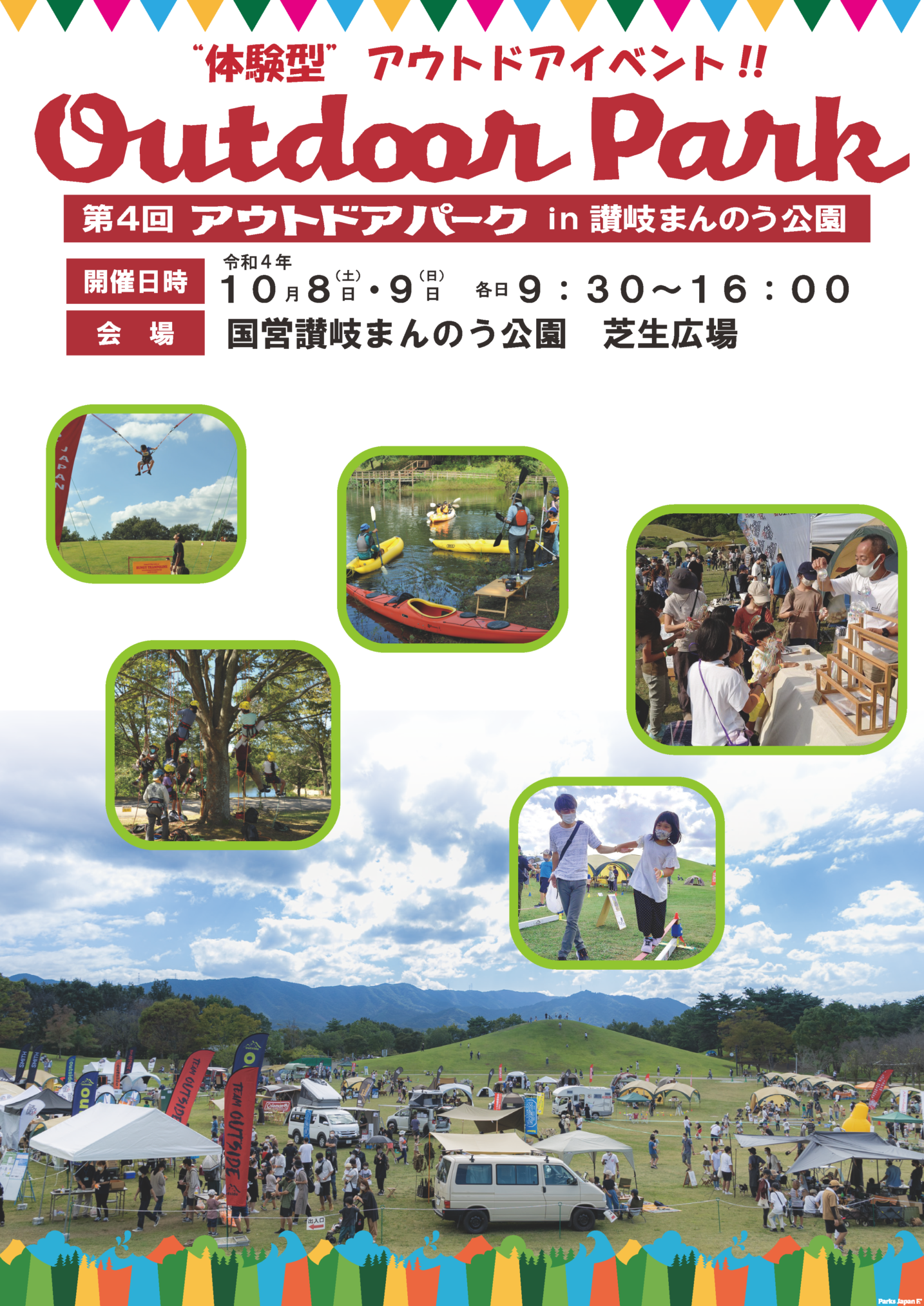 国営讃岐まんのう公園で「アウトドアパーク in 讃岐まんのう公園 2022」が2022年10月8日(土)、9日(日)に開催されます。