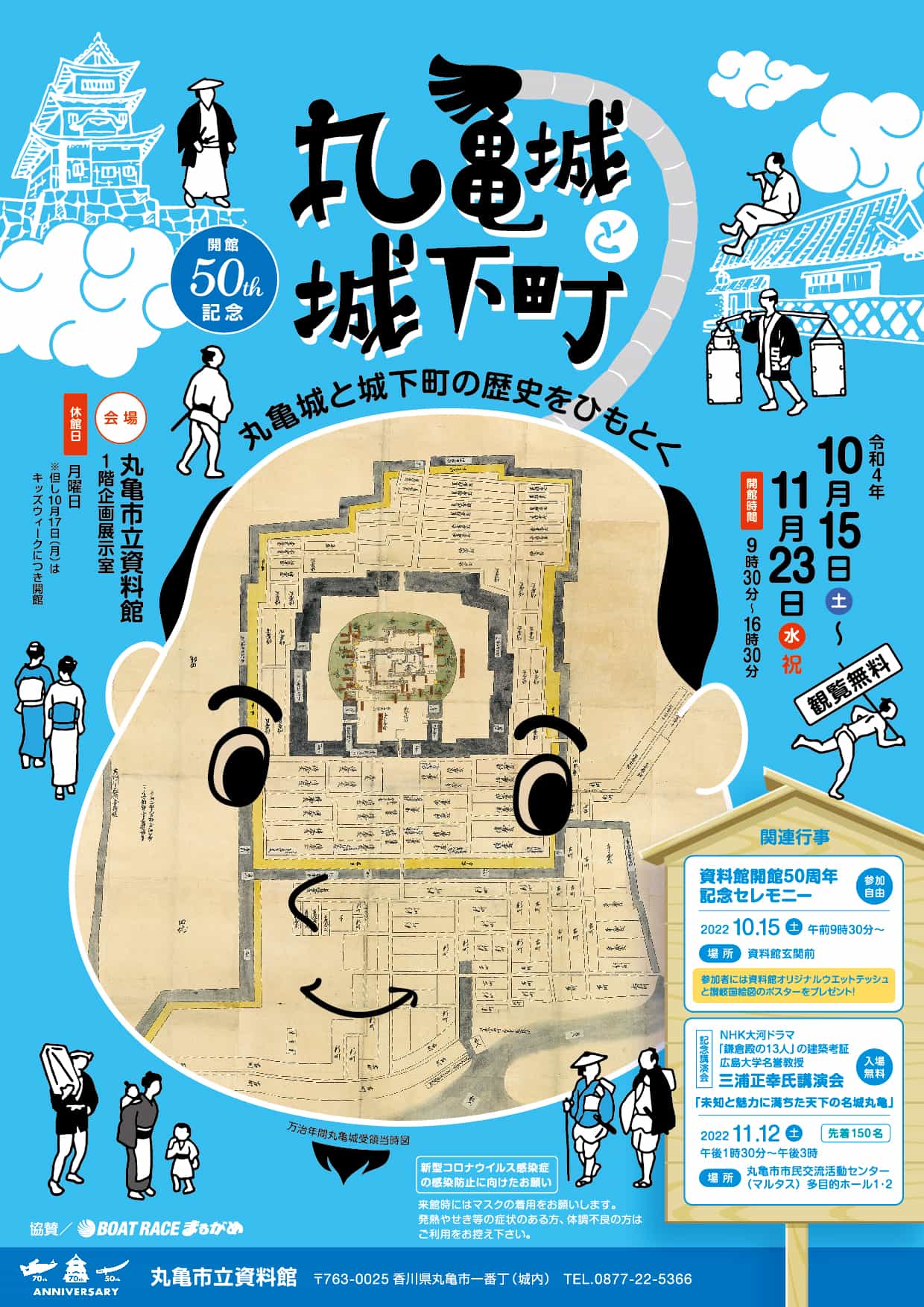 丸亀市立資料館で「資料館開館50周年記念 丸亀城と城下町」が2022年10月15日(土)〜11月23日(水・祝)まで開催されます。