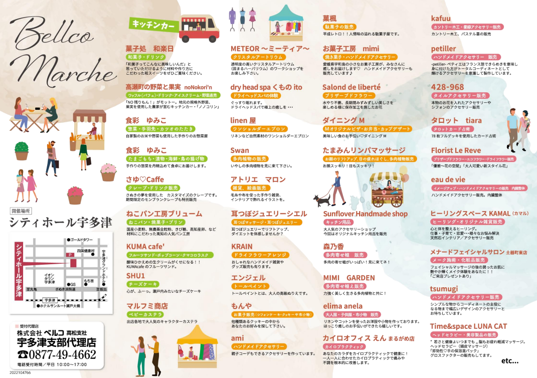 ベルコ シティーホール宇多津で2022年12月3日(土)に開催される「ベルコマルシェ」についてご紹介します。
