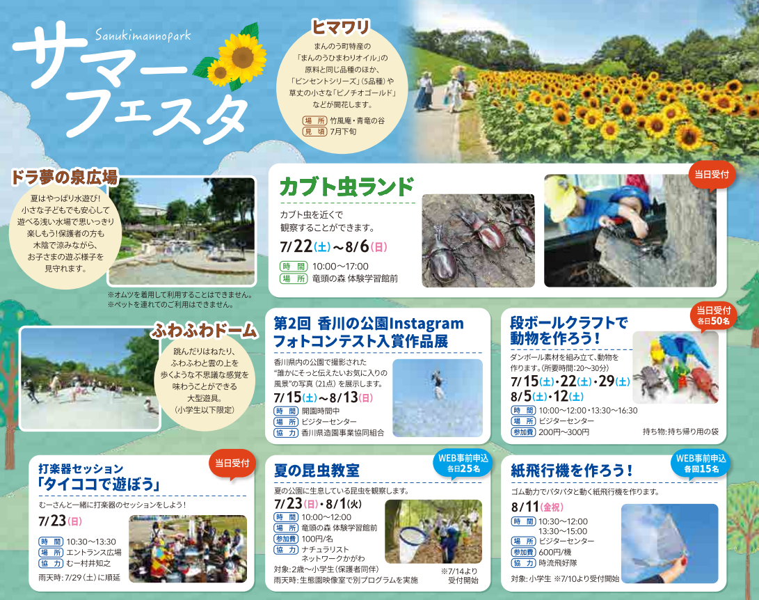 国営讃岐まんのう公園で「サマーフェスタ」が2022年7月16日(土)〜2022年8月14日(日)まで開催しています。