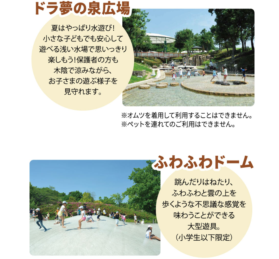 ドラ夢の泉広場は小さなお子様でも安心して遊べる浅い水場なので、保護者の方も木陰で涼みながらお子様の遊ぶ様子を見守れるので安心ですね♪