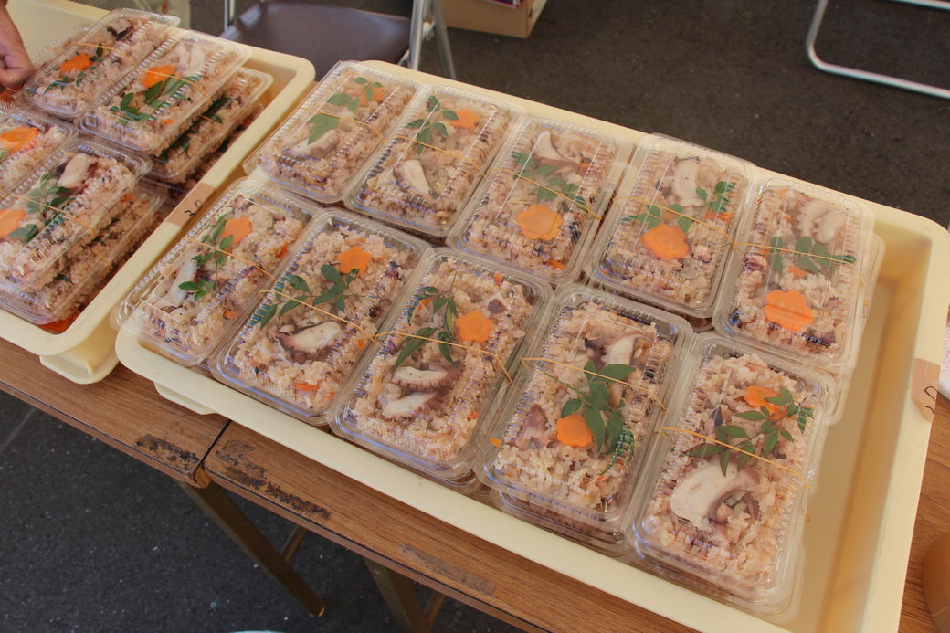 弁当、水筒 (うどんのお接待やタコ飯の販売あり)