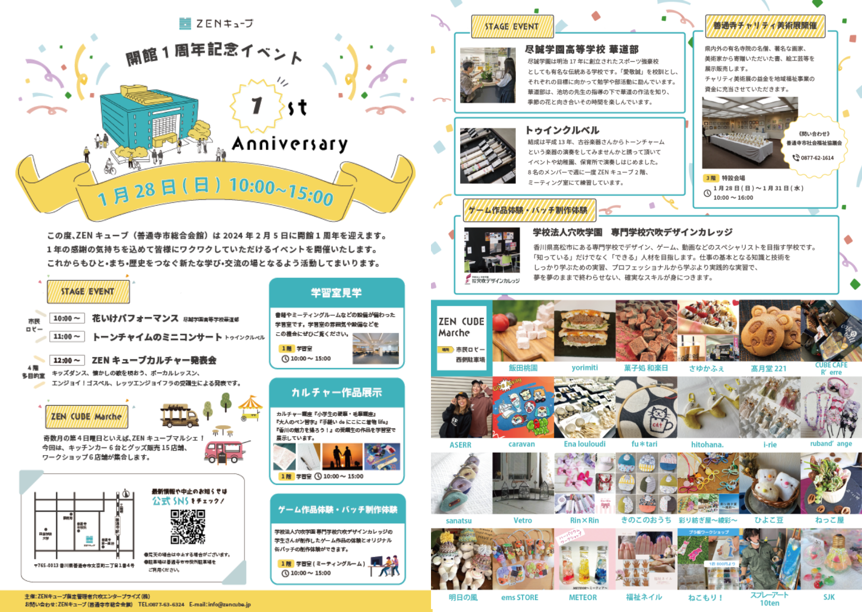 善通寺市文京町のZENキューブで2024年1月28日(日)に開催される「ZENキューブ開館1周年記念イベント」についてご紹介します。