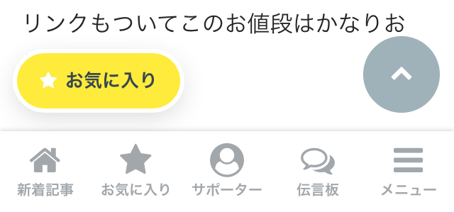 ホーム お気に入り MEMO気に入った記事やもう一度見る可能性の高い記事を『お気に入り』として保存しておくことができます。 使い方 追加方法は簡単です。閲覧中の記事ページ内にある『お気に入りに追加』ボタンをタップするだけ。 ↓↓↓ 黄色いお気に入りボタンになれば追加が完了しています。 お気に入りをみる ページ下部の『お気に入り』をタップすると現在お気に入りに追加されている記事一覧が表示されます。一定期間(約一ヶ月)を過ぎると全てリセットされます。