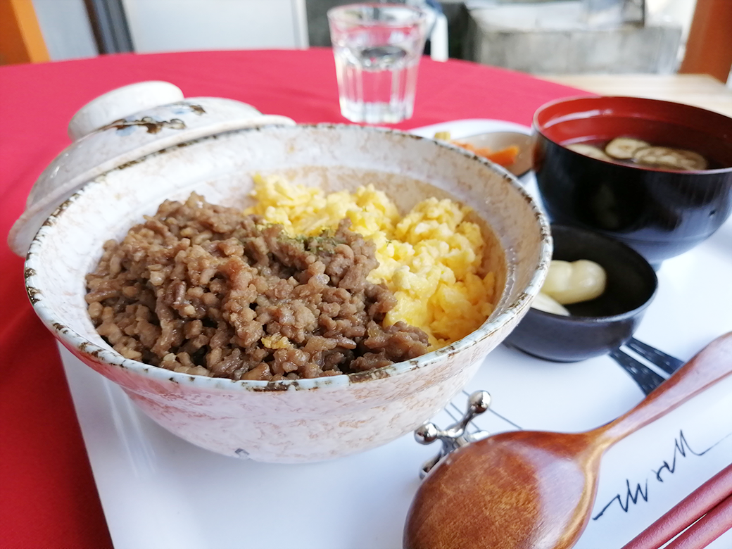 パサパサした感じではなく、適度に肉汁が残っていて甘味もあり卵と混ぜ合わせた食感はいつの間にかに笑顔になってました。