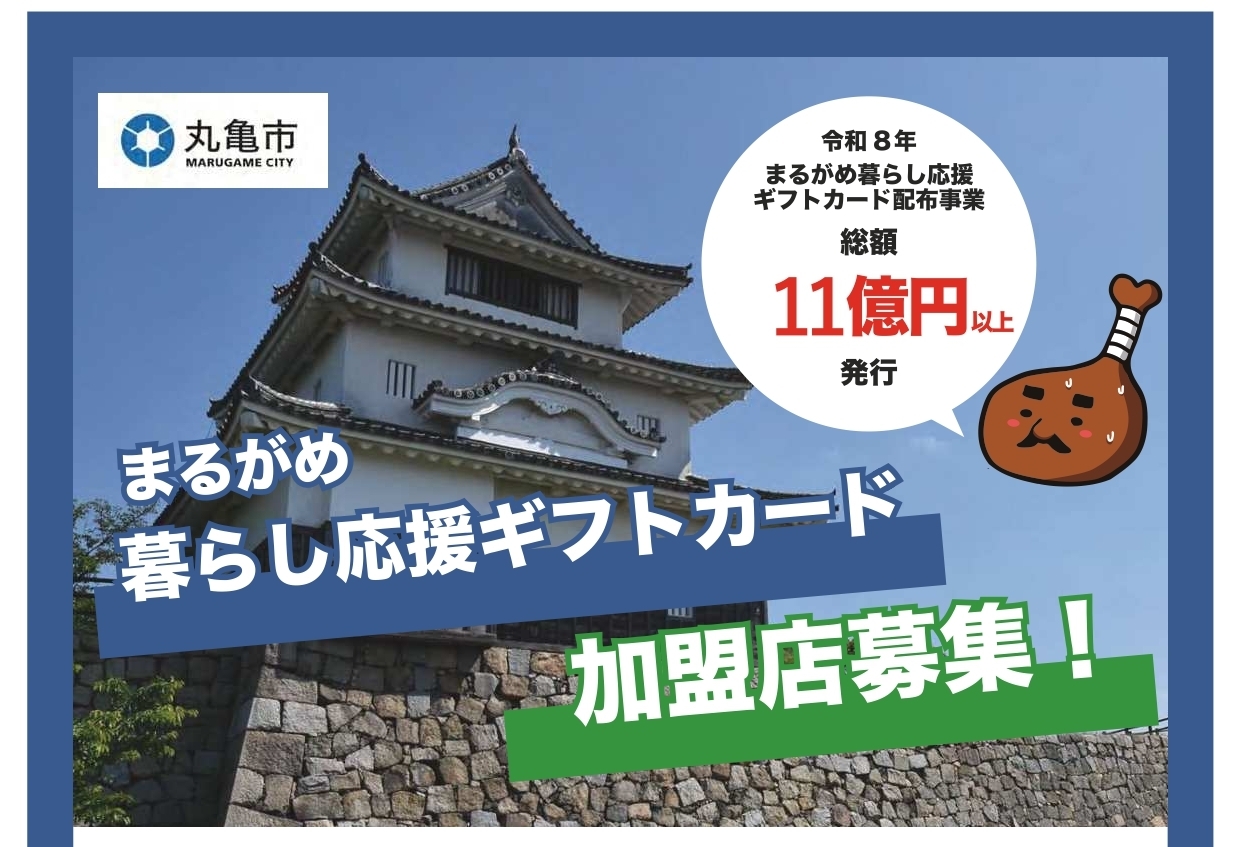 まるがめ暮らし応援ギフトカードの取扱店舗を募集しているみたい。ギフトカードもそろそろ届く時期かな?