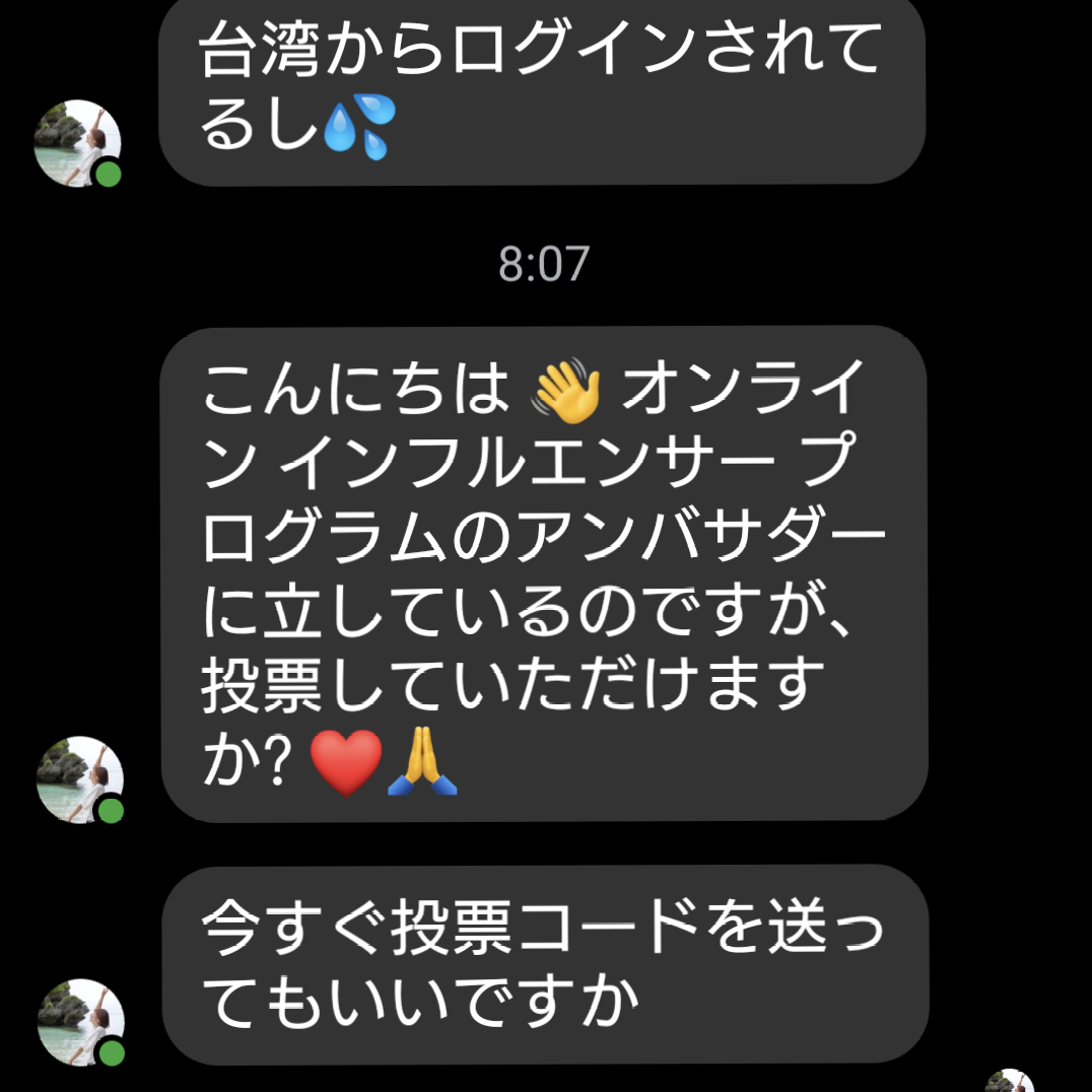 写真のような内容のメッセージが届き 返信するとアドレスが送られてきてクリックするとアカウントを乗っ取らます。