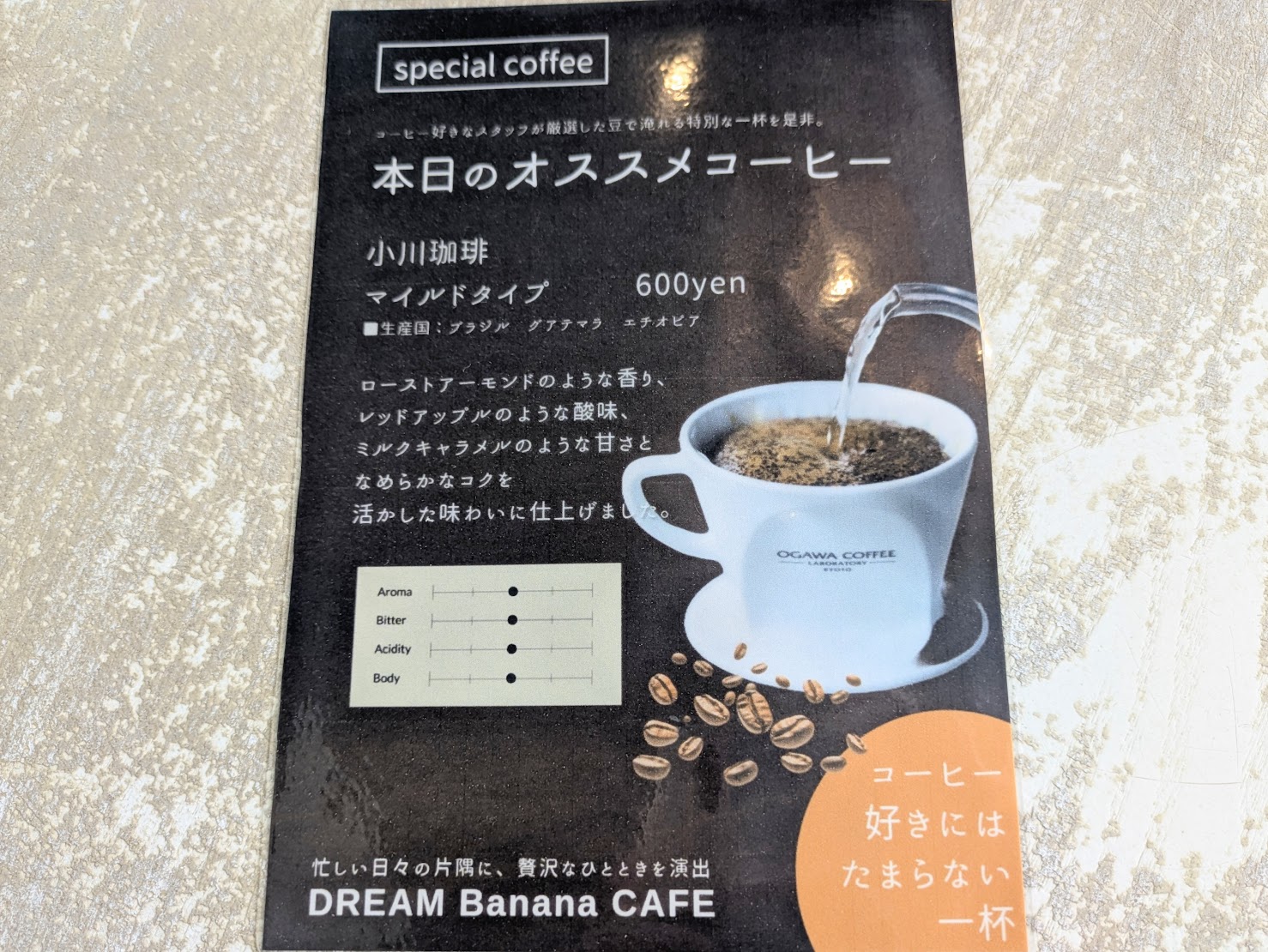 丸亀市綾歌町 Dream Banana Cafe メニュー