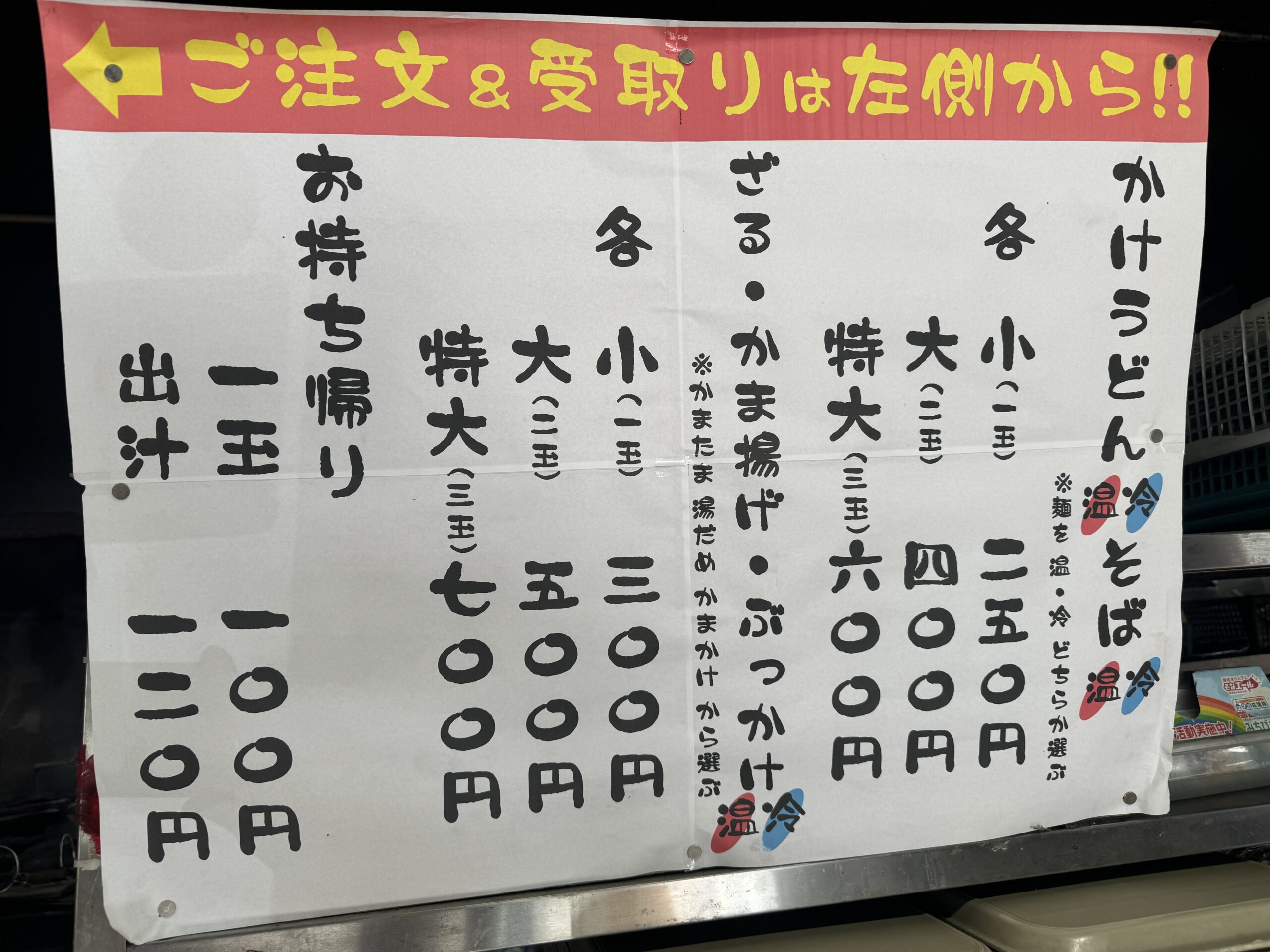 かけうどん(小)250円(税込)