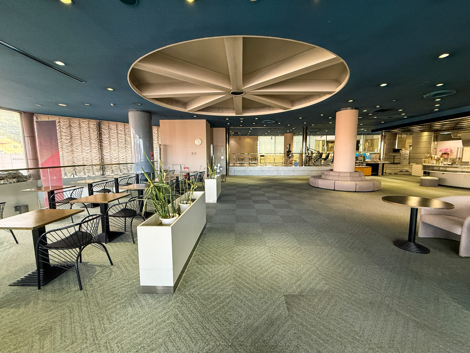 お世辞にも綺麗とは言えないマルナカの店舗から2階に上がり扉を開けた瞬間、思わず「えっ、ここジム!?」と声が出るほどの広さとゴージャス感。実はもともとはバブル時代に「リゾートクラブ」として建てられたものらしいです。エントランス全体からはもちろん壁や柱などの随所から豪華な雰囲気が漂ってきます。