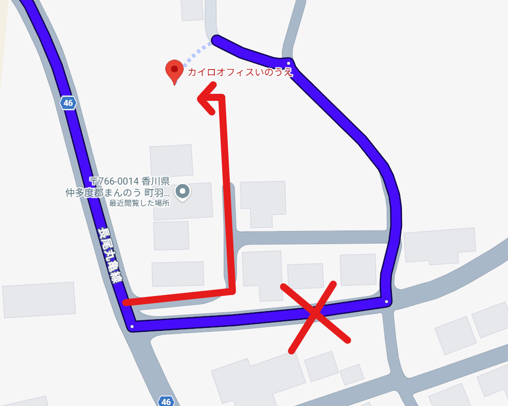 Googleマップに道がまだ載ってなくてナビ通りに行こうとすると、「一本南側の道」へ誘導されてしまうんですが、実際は指示された道じゃなくて、そのすぐ北側の道から入った住宅街の一角にあります。