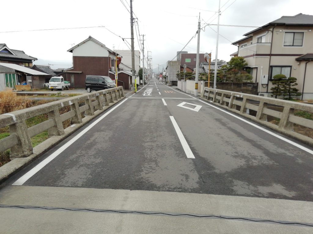 この橋(金蔵寺橋)を渡ってすぐ左折して、川沿いの細い道へと入ります。善通寺版「泪橋」といったところでしょうか。ちなみにこの道を真っ直ぐ行くと、「76番札所金倉寺」の前に出ます。