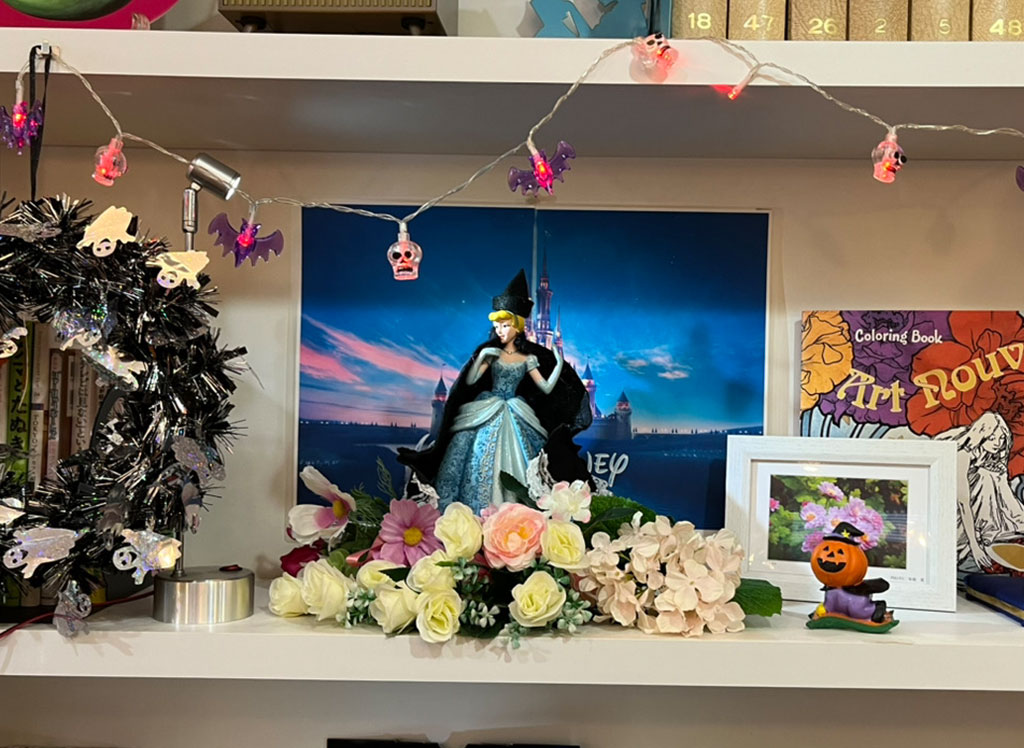 本の合間にいろいろな可愛い小物も置いてあるので、料理がくるまでの間に目で楽しむのもいいですね♪ ちなみにこの日は時期的にハロウィン関連の装飾がしてありました。