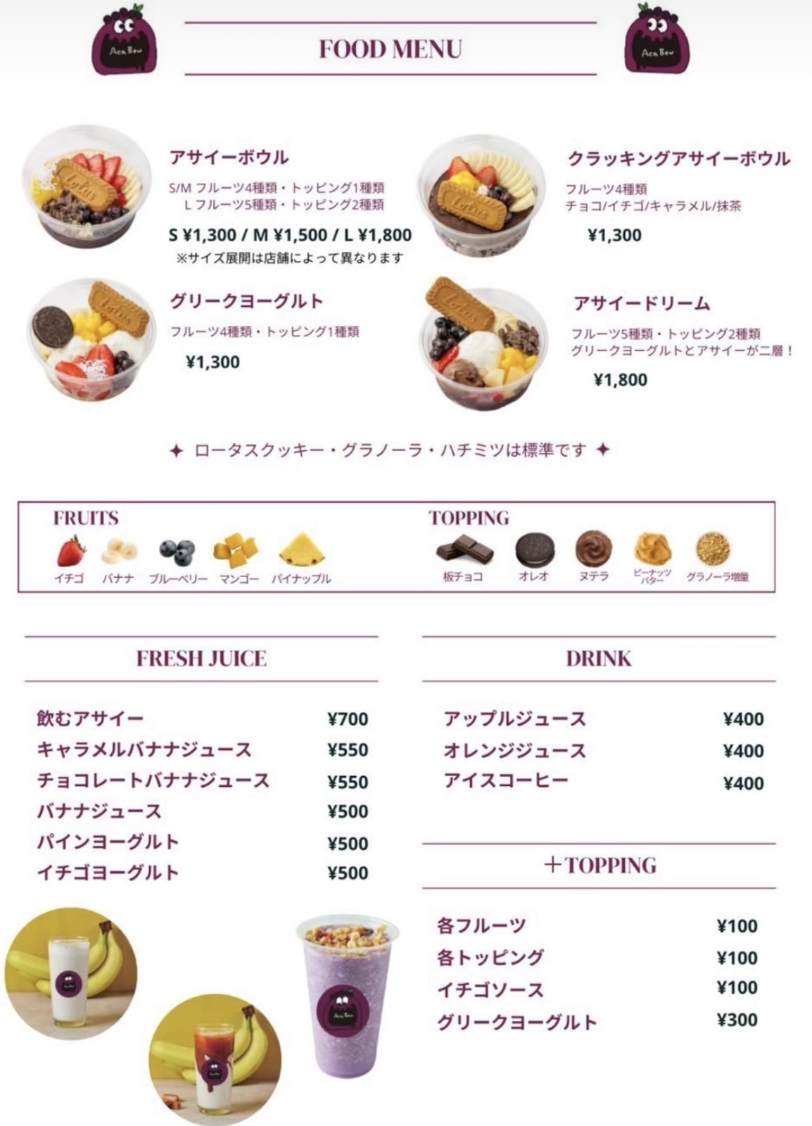 「アサイー工房宇多津店」では看板商品のアサイーボウルの他、グリークヨーグルトや飲むアサイーなどなど、巷で流行しているメニューがずらりと取り扱われるようです♪