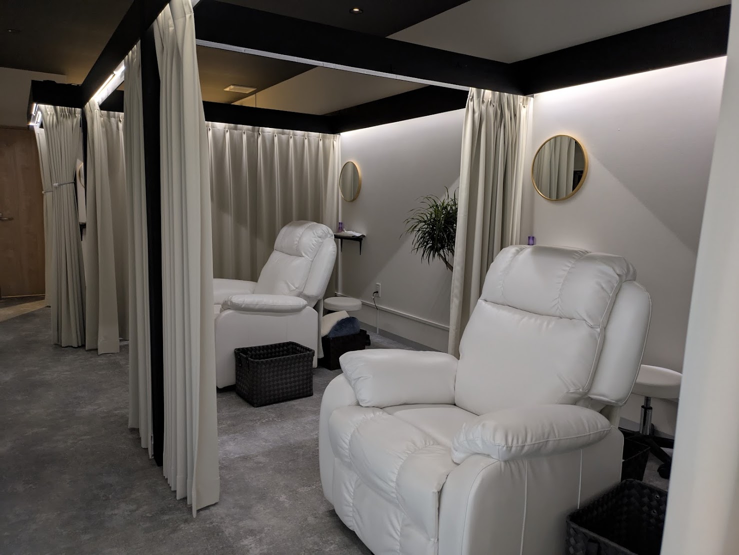 写真のようにカーテンの仕切りを外せば、友達や夫婦で一緒に施術を受けることも可能。