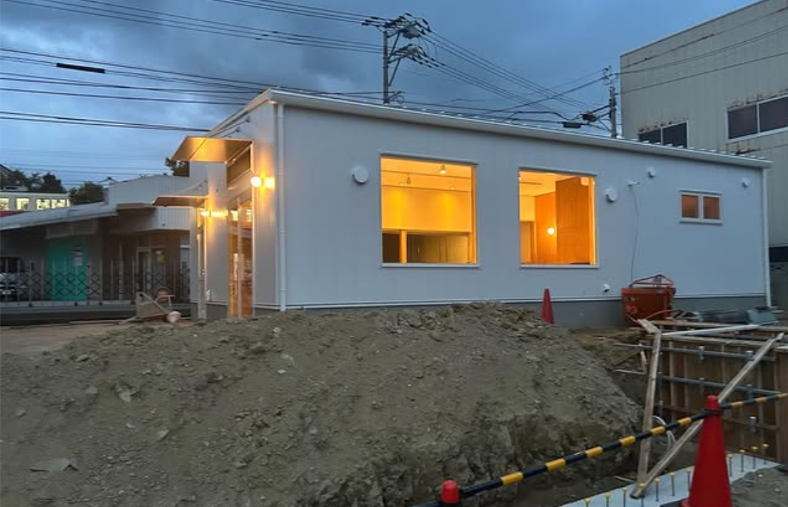 実は、今年の6月から店舗の建築工事がスタートしていて、基礎工事 → 建て方 → 屋根・外壁工事 → 電気・内装工事を経て、工事も最終段階に入り完成まで、もうあと少しというところのようです♪
