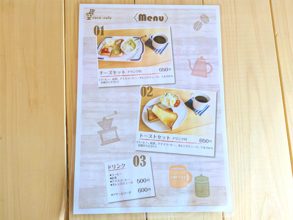 オーナーさんは山の方で暮らしていて、草刈りの合間にふと空を見上げたときに広がる“真っ青な空”がとても印象的なのだそうで、そのたびに「空っていいなぁ」と感じており、そこから「空カフェ」という名前を付けられたんだとか。