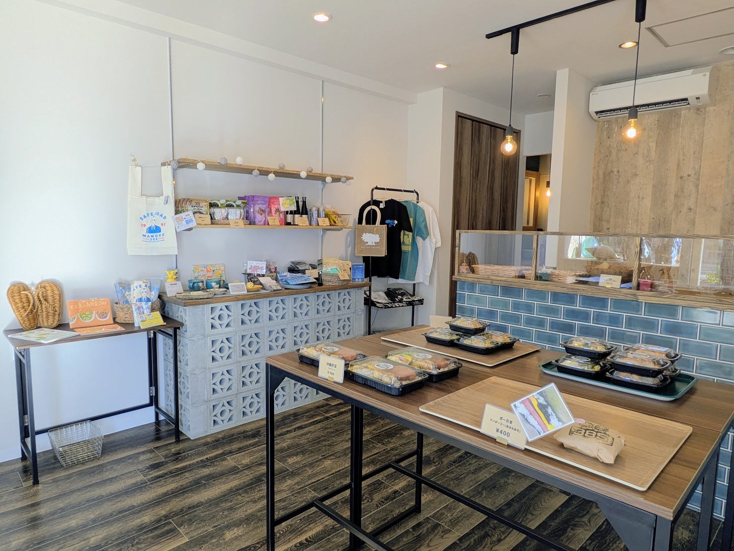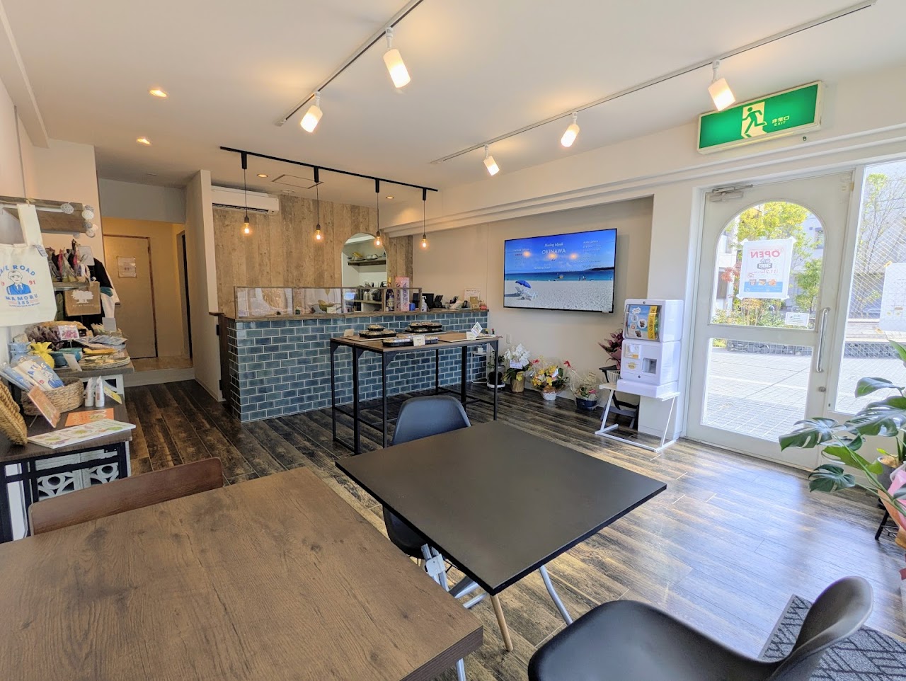 中へ入るとさらに南国ムード全開の明るく開放感のある空間になってて、“ゆるっと宮古の時間”が流れているような心地よさがあります。イートインスペースも先着順で4名ほどの利用になりますが整えられ、ちょっと休憩したり、料理をゆっくり楽しむことも可能になりました。