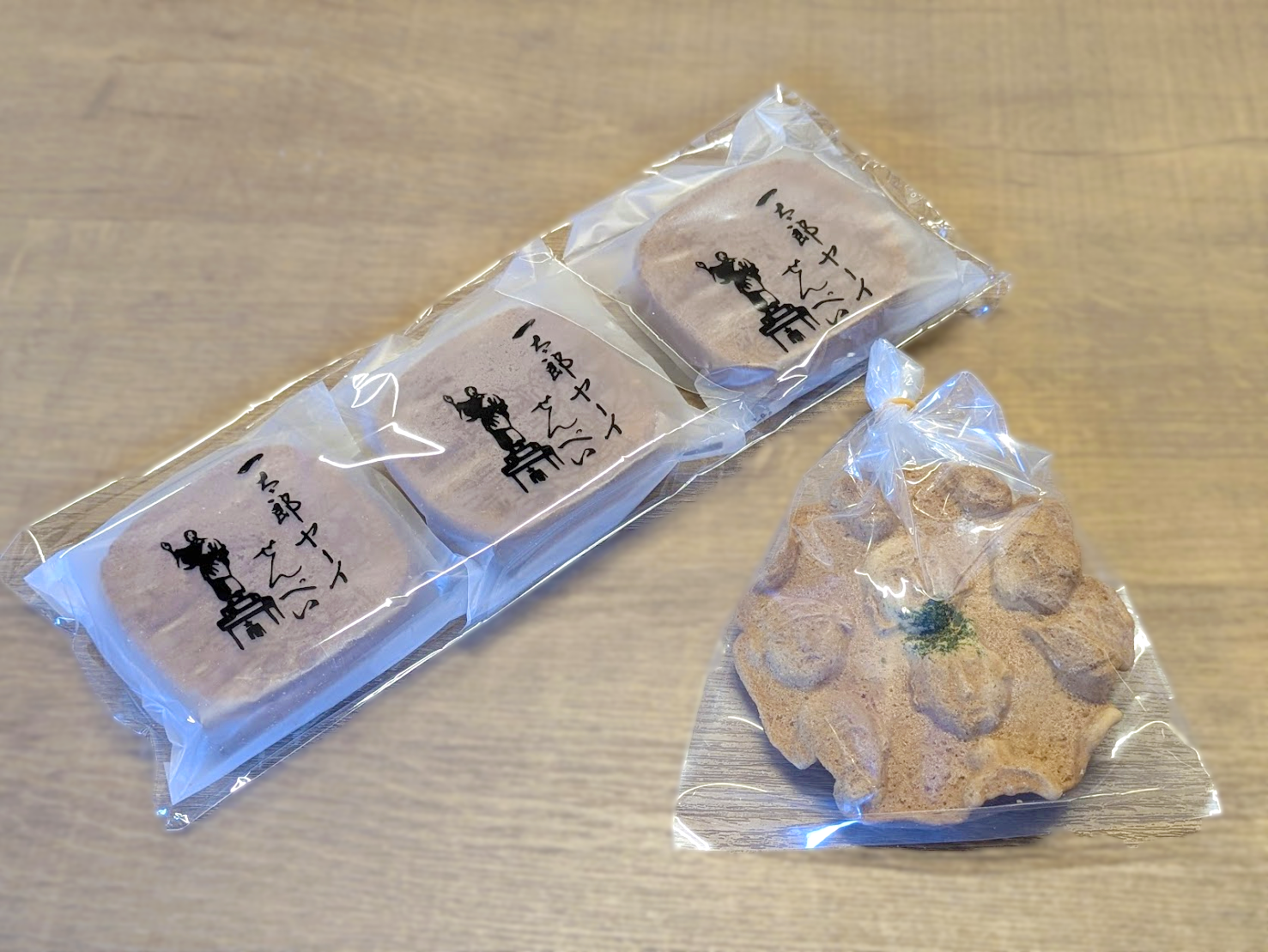 全部で8種類あって、サクサクと軽い食感のもの、しっかりとした歯ごたえがあるもの、形も丸かったり、四角かったり・・・と、どれを食べても、どこかホッとする優しい甘さが口いっぱいに広がります。個包装されている「一太郎ヤーイせんべい」は、箱に詰めてもらうとお土産や贈り物にもぴったりでした。