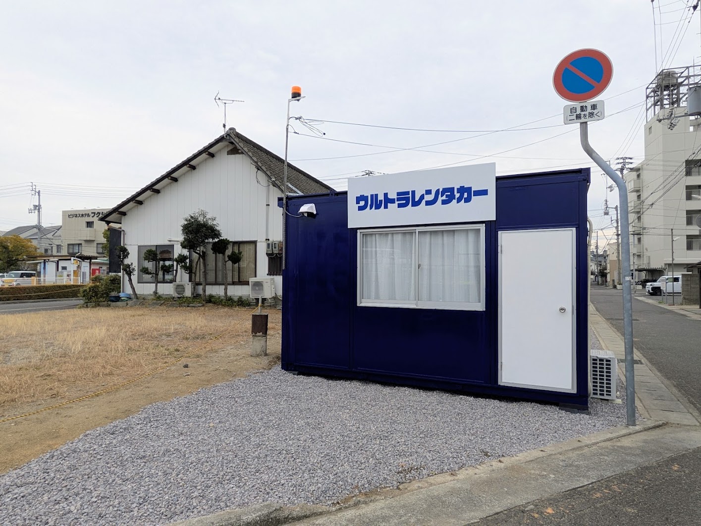 丸亀市福島町の「手打うどん 太助」跡地近くに青いコンテナが出現!原付や軽自動車も借りられる「ウルトラレンタカー」ができるみたい
