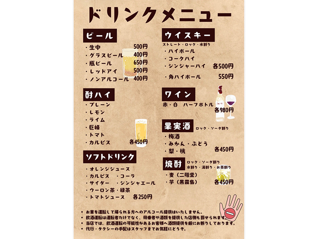 さらに、嬉しい一品料理とドリンクも充実。特に「揚げたて!手作りがんも」は「ぜひ食べてみて!」とオーナーさんおススメの一品!