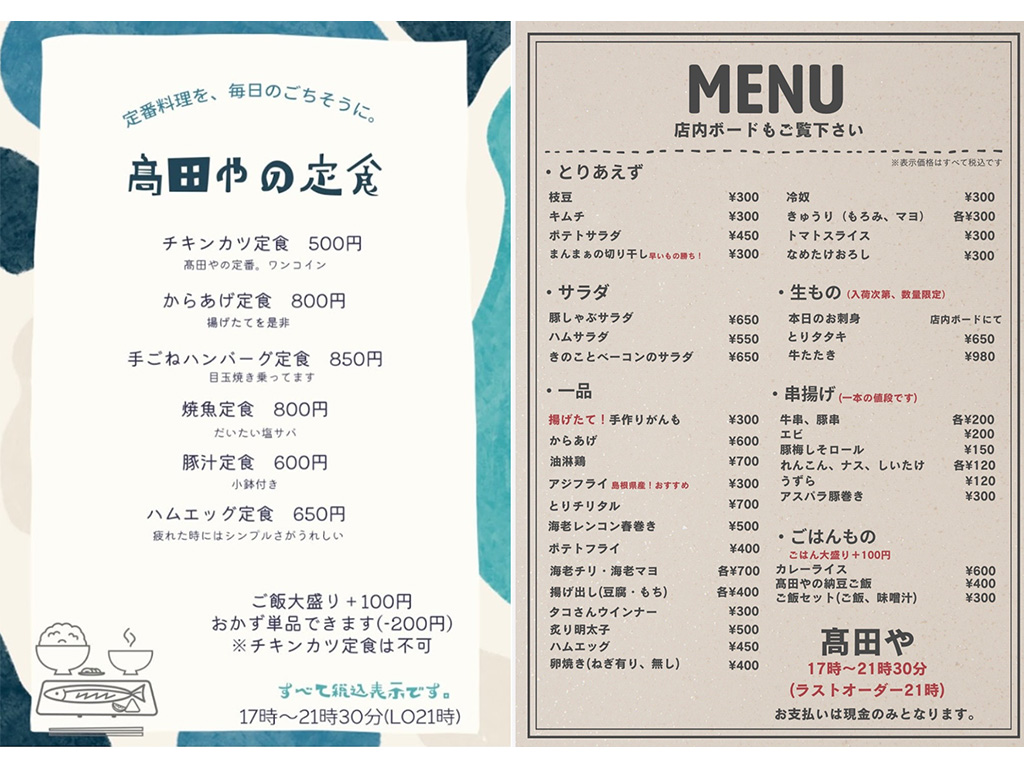 高田やの定番「チキンカツ定食」はワンコイン!からあげ定食や目玉焼き付きの手ごねハンバーグ定食も800円台と、この令和の時代に、この価格で楽しめるなんて・・・思わず「えっ、本当にいいんですか?」と聞き返したくなるレベルです!