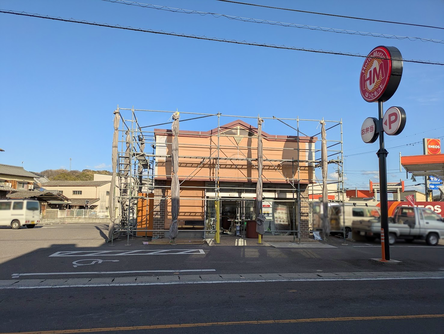 先日、中津町店の改装をお伝えしたばかりですが・・・なんと!飯山町の「ほっともっと 丸亀飯山店」でも、リニューアル工事が始まっているのを発見しました!