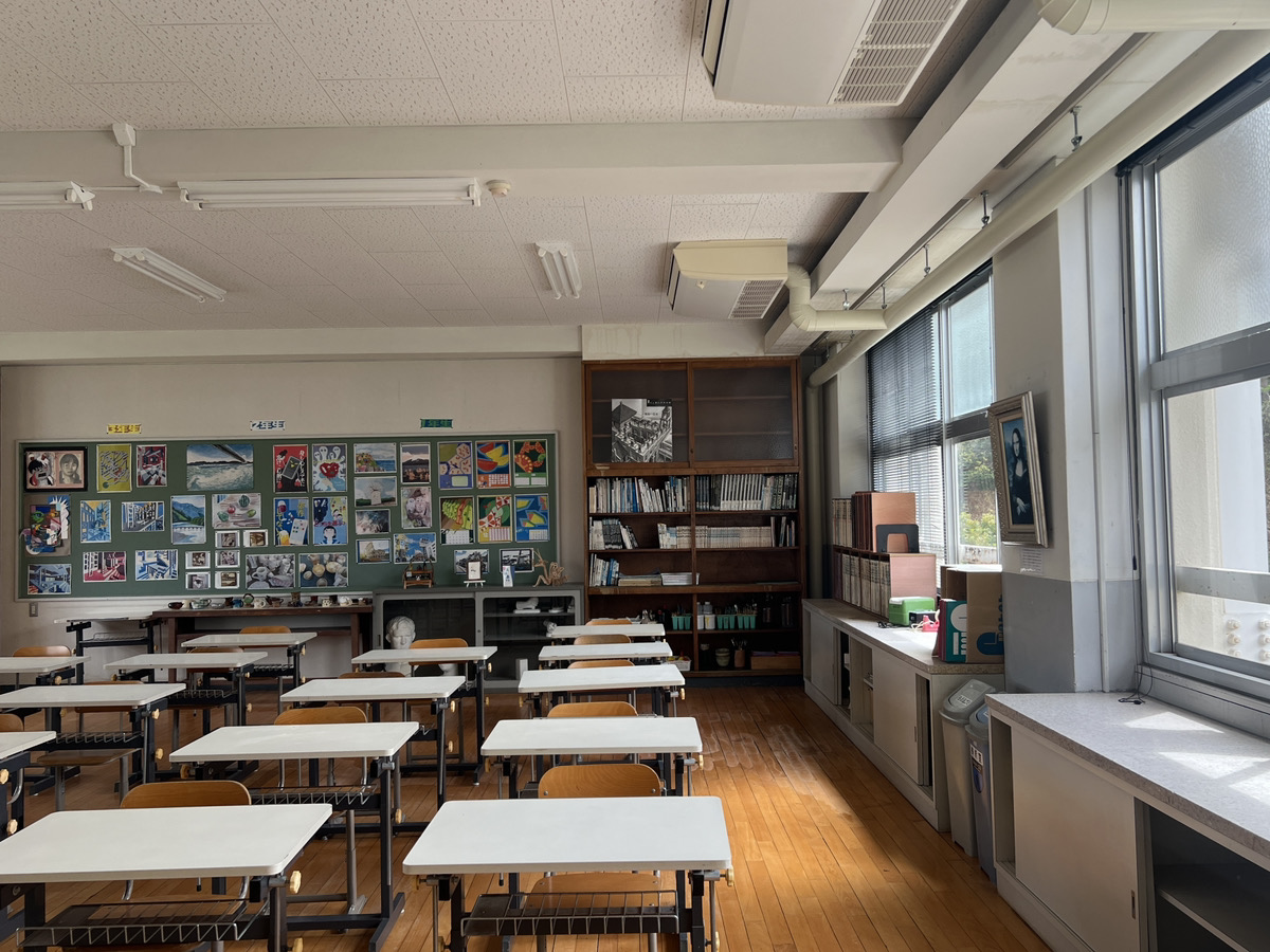 一方で、校舎の方はまだまだ「学校」の面影が残っていて不思議な感じです。黒板に貼られた生徒さんの作品や備品が当時のまま残っているお部屋もあり、なんだかノスタルジックな気分に。最先端のAI技術と、懐かしい学び舎のギャップが生まれるのは廃校を活用したデータセンターだからこそですよね!