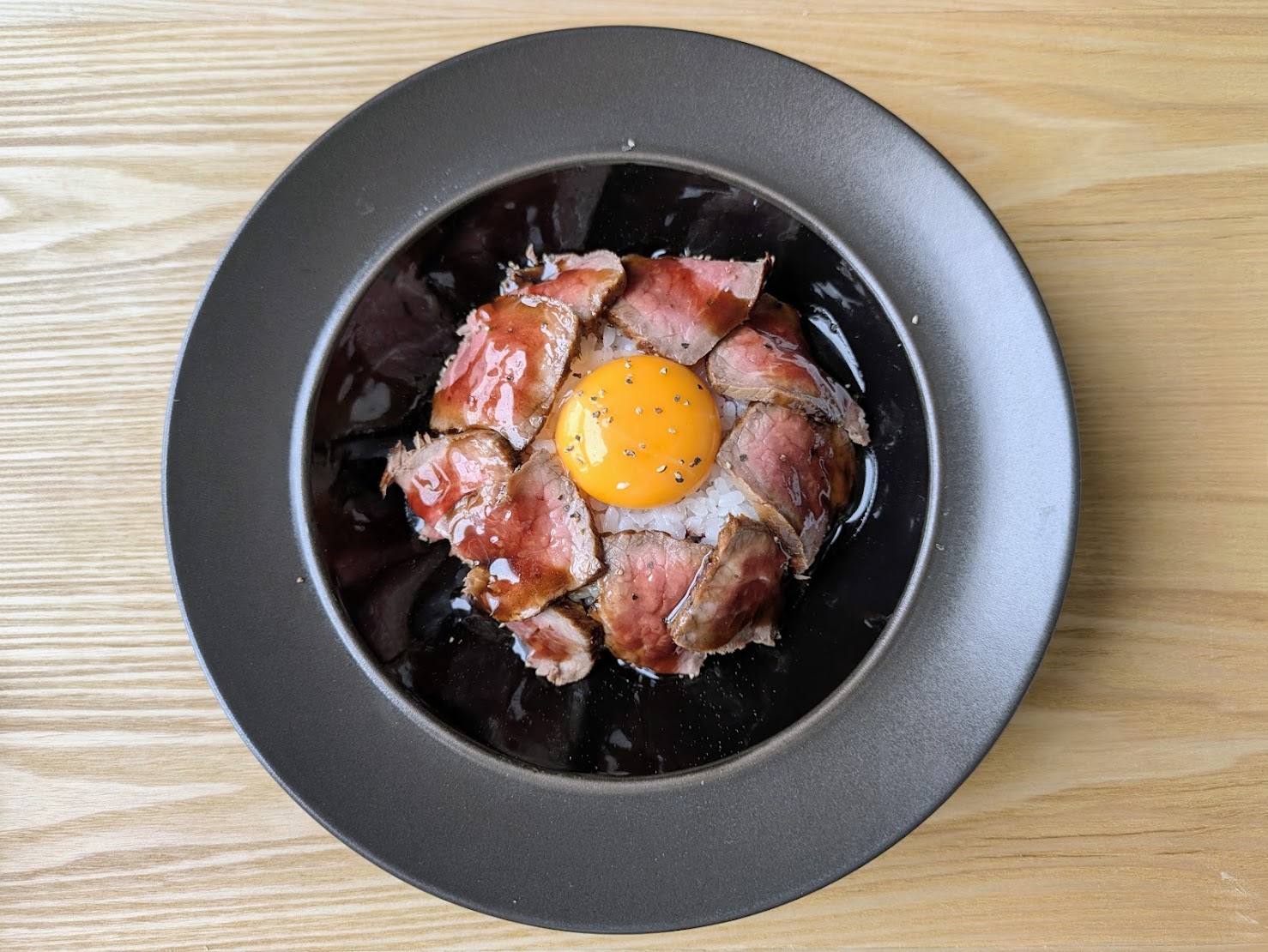 美しく並んだ柔らかいA5ランクの和牛に、ふわっと香る濃厚なバルサミコソースがたっぷり!中央の卵黄をからめていただけば、もう言葉を失うほどの極上感です。自分へのご褒美ランチにぴったりです!