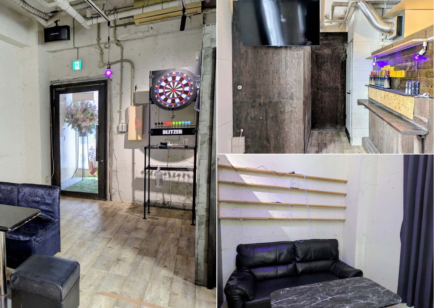鮮やかなピンクのカウンターチェアに、ゆったり寛げるブルーのソファ席があります。お昼はランチ、夜はバーと店長さんも変わる2つの顔を持つお店なので、ダーツマシンや角には個室も完備されていて、遊び心も満点です♪今のところダーツやカラオケ、個室は夜のみの利用になってます。