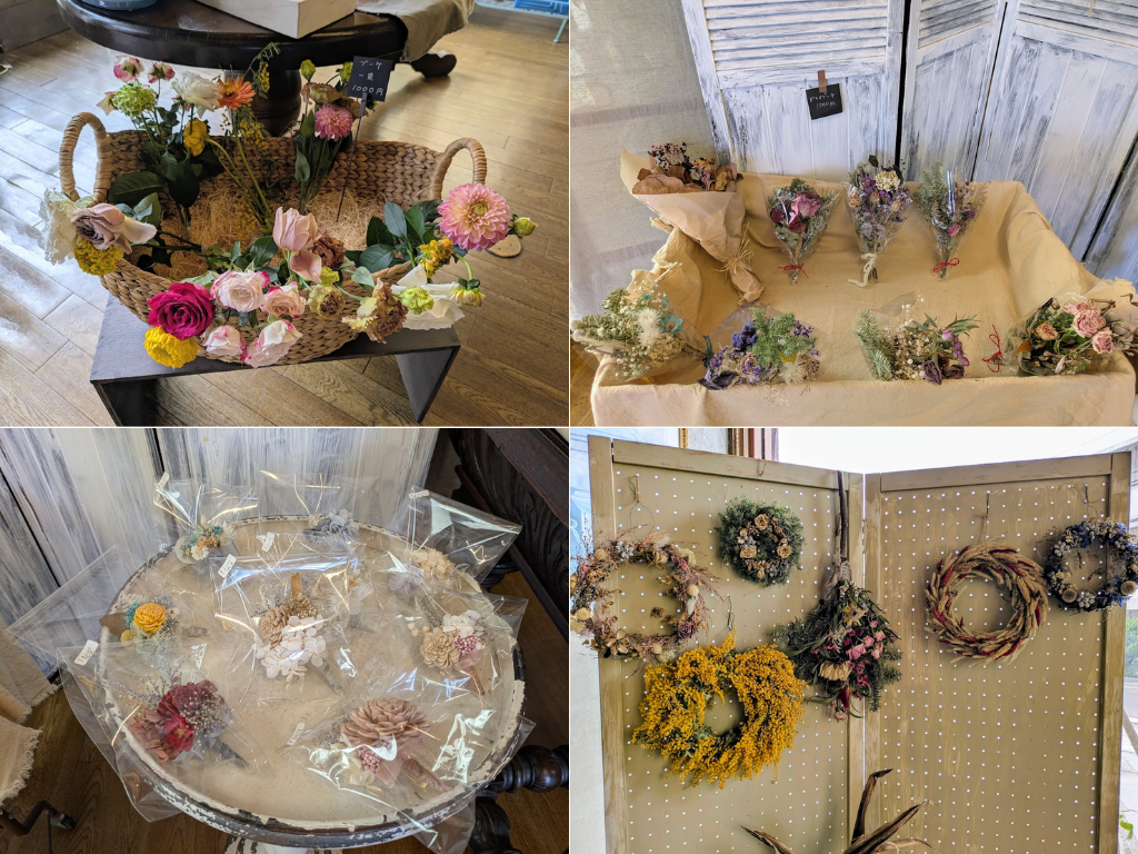 他にも、プリザーブドフラワーを使ったコサージュやリースなど、長く楽しめるアイテムも充実していました。