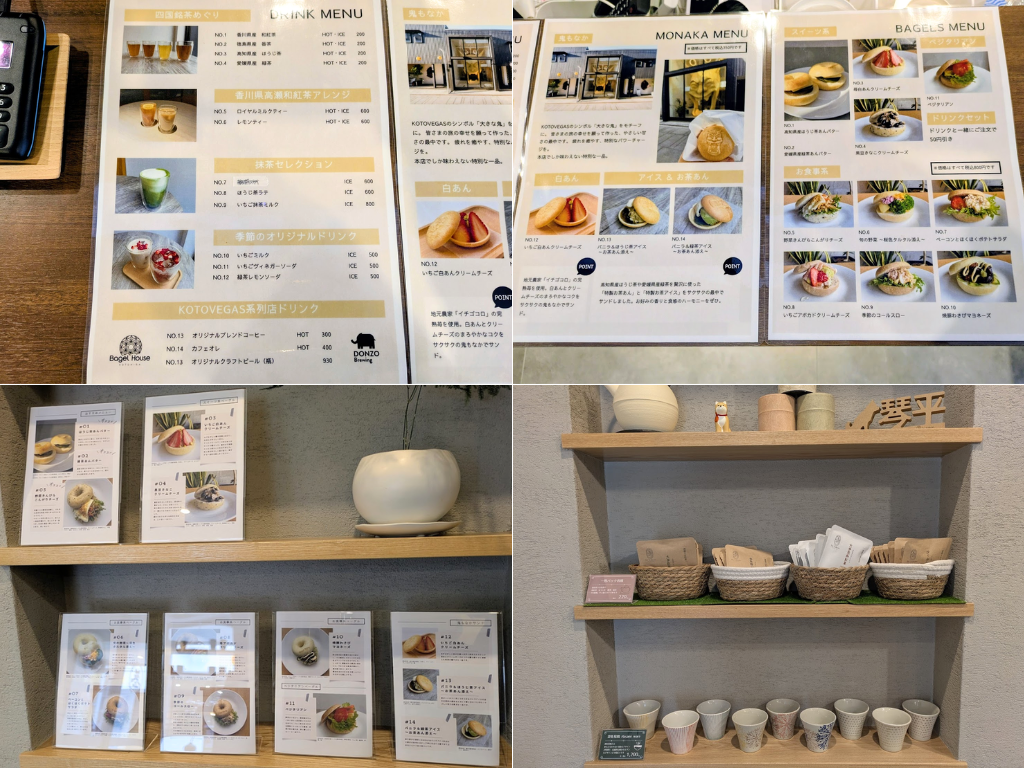 今回のリニューアルの目玉は、なんといっても隣接する「Bagel House KOTOHIRA」の焼きたてベーグルに、地元食材をたっぷりはさんだベーグルサンド!ランチや軽食にぴったりなお食事系から、甘党さん必見のスイーツ系まで、10種類以上のラインナップが登場しています。
