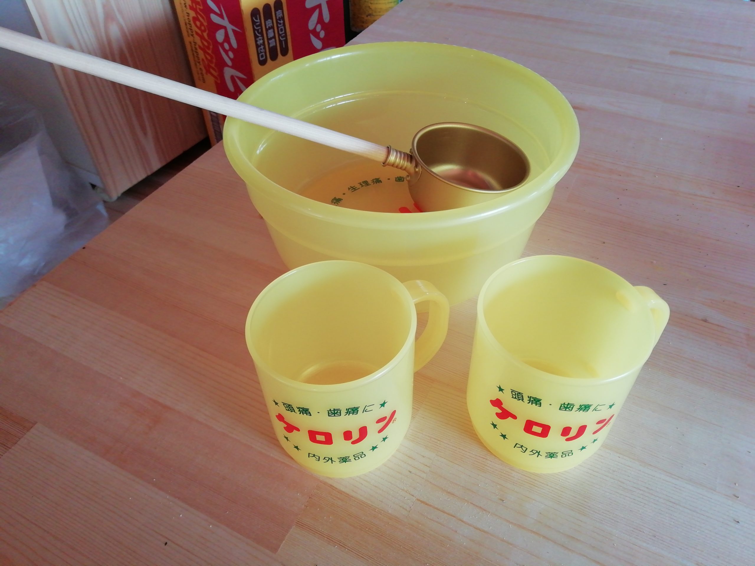 ケロリンの洗面器に入って出てくるレモンサワーを、柄杓ですくってケロリンコップで飲むのだそうです。体にいいのか悪いのか(笑)