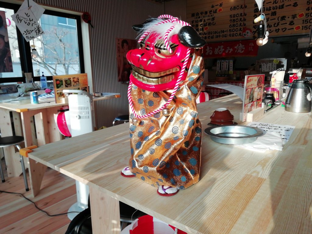お店に入ると、物音に反応してこの獅子舞が踊りはじめます。多分最初はビビります(笑)
