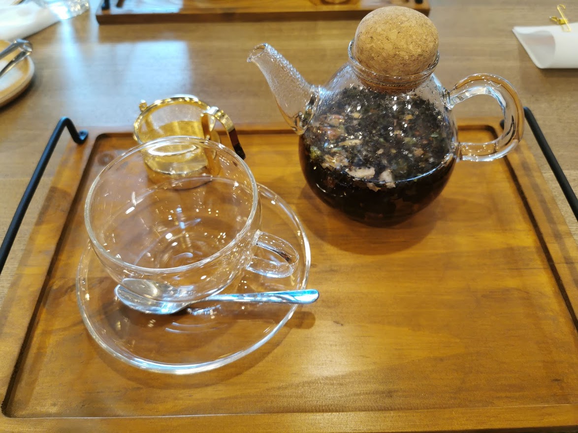カップに注ぐ際ですが、奥の金色の茶こしで花が落ちてしまわないように注ぐと、その瞬間から花の甘い香りが漂ってきました!
