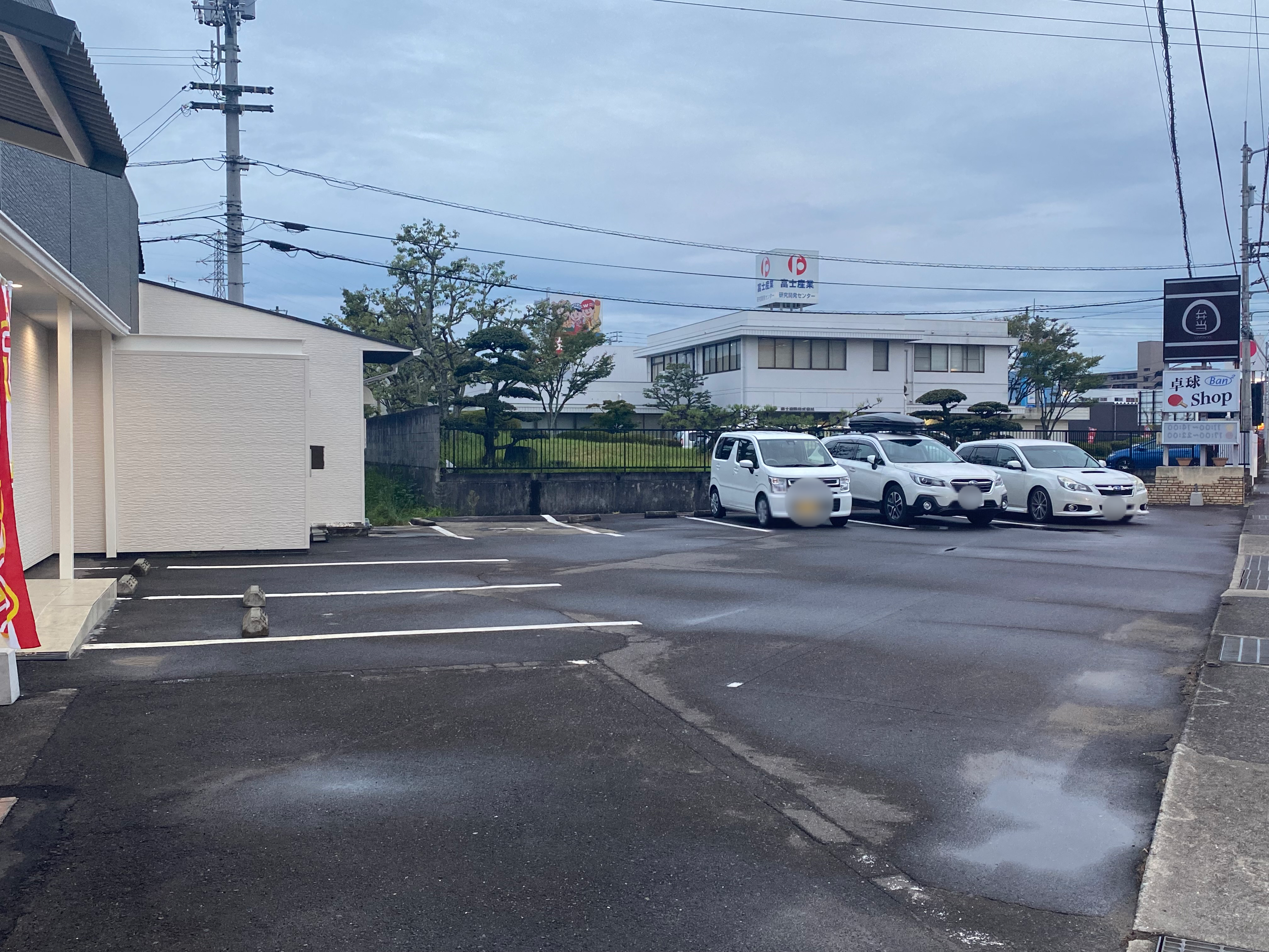 県道33号線沿いにあり、道路を挟んで向かい側には、「田子作」や「天下一品丸亀おいしい広場店」などの飲食店が立ち並んでいます。