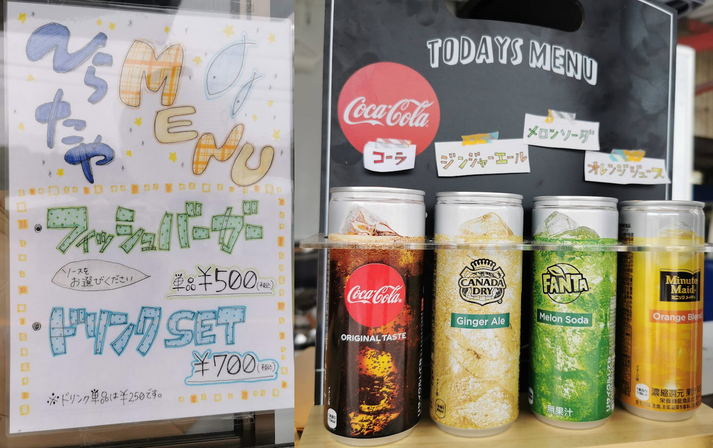 キッチンカーの側には、その日のお魚の種類やソースが黒板に記されており、そこからお好みのメニューを選ぶことができます。この日は、ぷりっとした食感に仕上がった「えびカツ」が初登場していました。